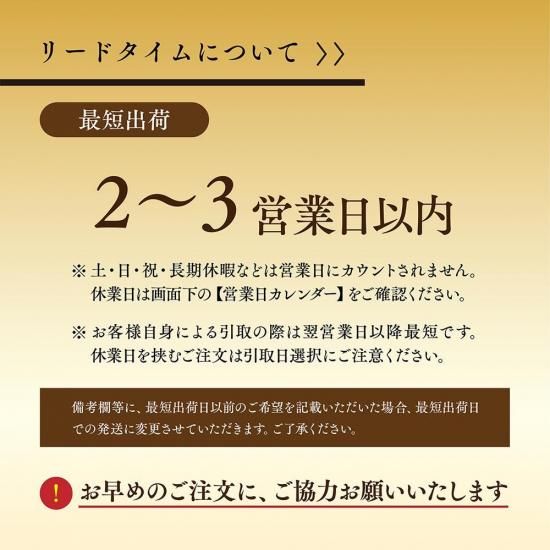※配送日時のご指定がある場合は、お早めのご注文をお願いいたします。